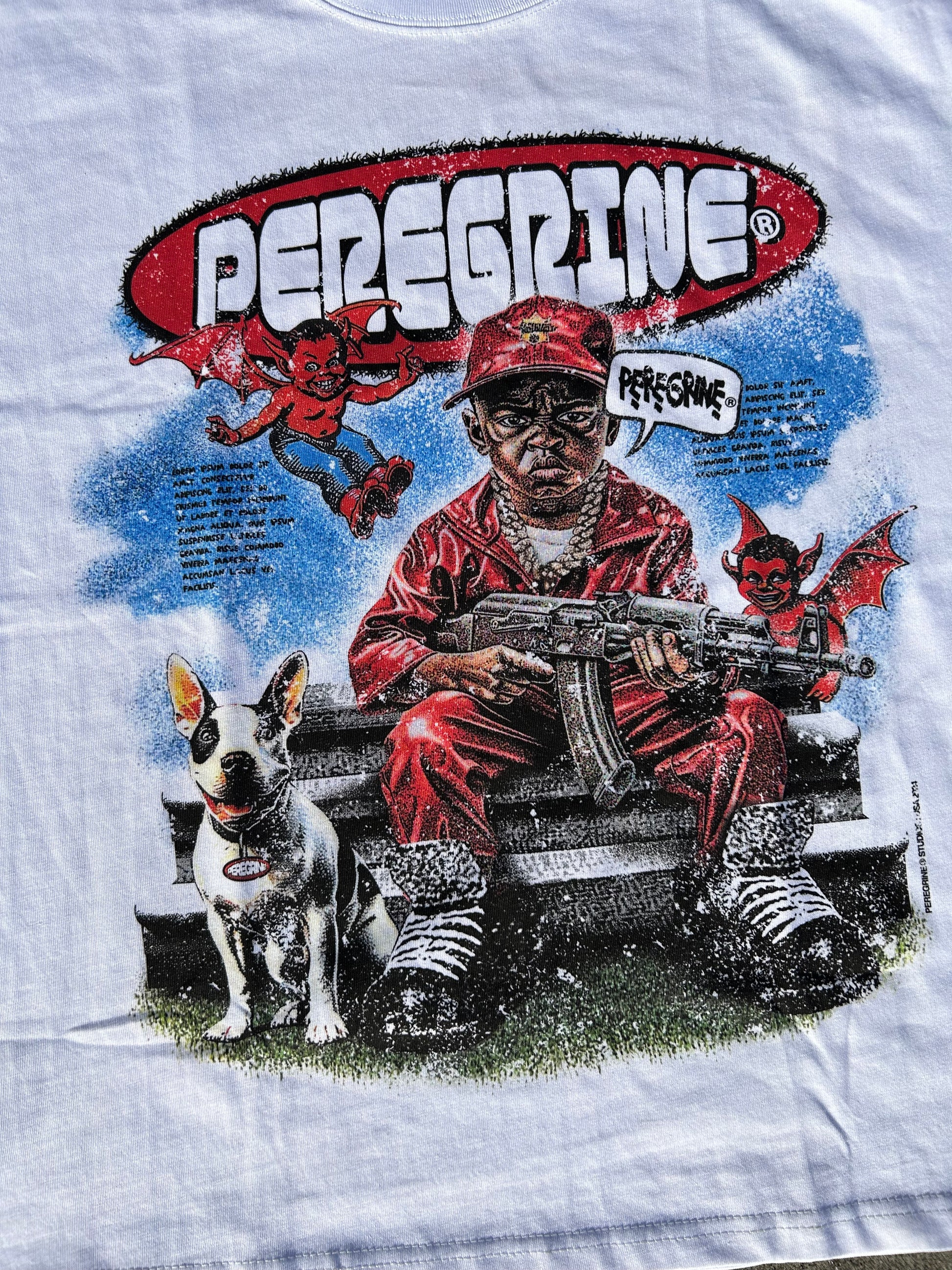 INTRODUCING OUR FIRST STATEMENT PIECE THAT SET IT OFF FOR THE PEREGRINE BAND “CRIMINAL MIND” BOXY TEE. NOT ONLY IS IT A PIECE OF ART BUT WAS CRAFTED FROM REAL LIFE EMOTIONS , WHO SAID YOU CANT SEE FEELINGS THROUGH ART ?